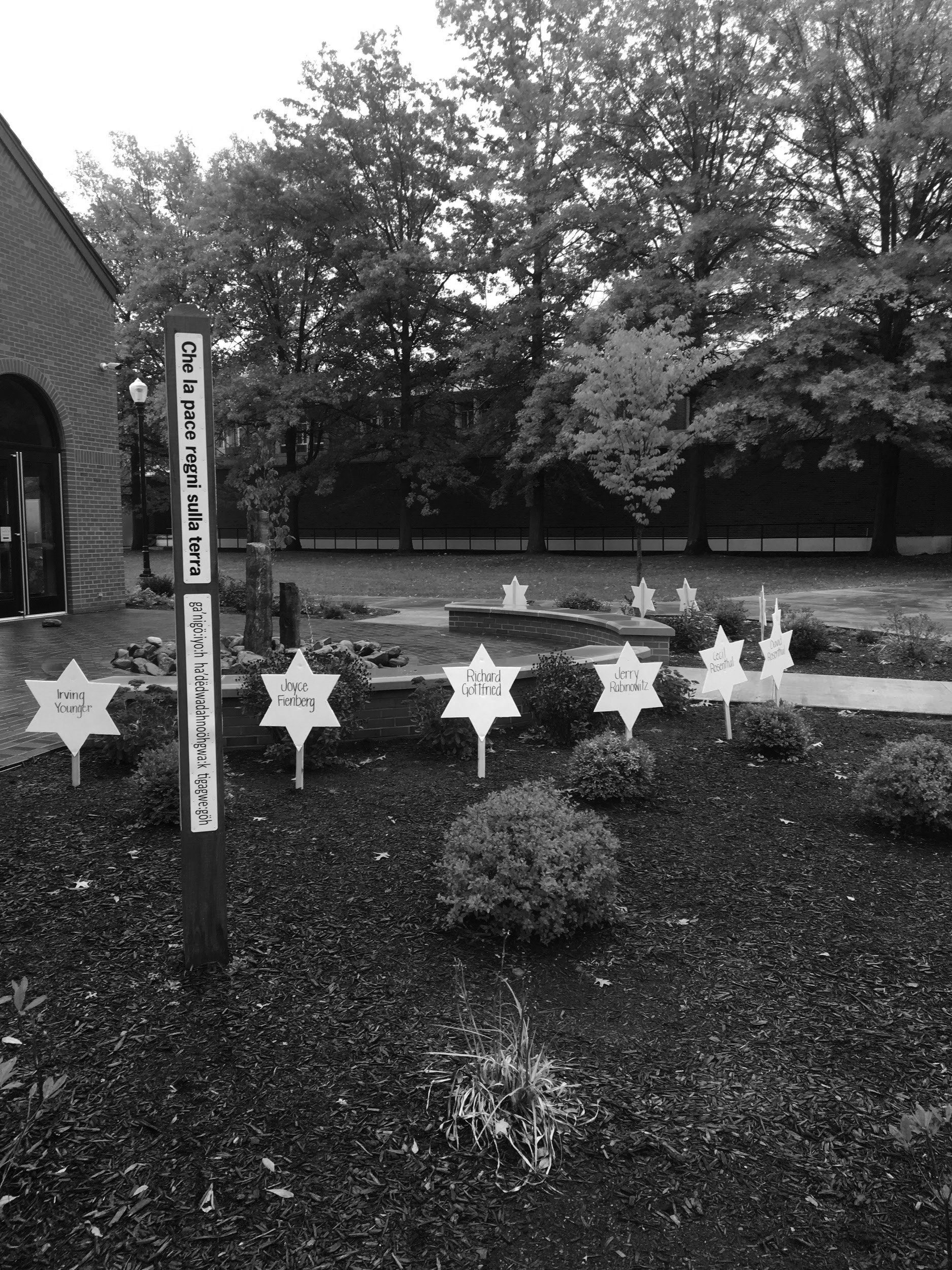 At the ceremony, SBU students held Star of David-shaped signs with the name of a victim on each. The students then read a tribute passage aloud for each victim.